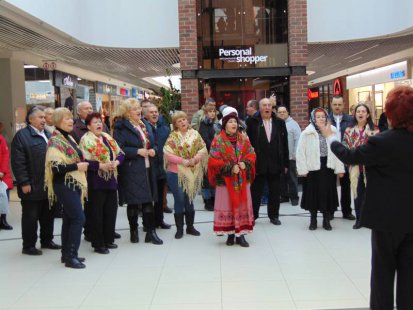 Ініціювало акцію керівництво Сумського обласного військкомату та студенти кафедри військової підготовки Сумського державного університету. В ТРЦ «Мануфактура» перед присутніми виступила хорова капела «Гармонія» при Сумській міській організації ветеранів України, лауреати багатьох фестивалів хорових колективів. Вона виконала акапельно пісні «Ой у лузі червона калина», «Боже, бережи Україну». На завершенні флешмобу всі присутні виконали Гімн України. Також до заходу долучилися ветерани війни на сході, близькі та родичі загиблих бійців, волонтери, громадські діячі, патріотично налаштована молодь і містяни.
