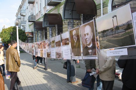 20 октября возле муниципальной галереи (ул. Соборная) прошла выставка фотографий под названием «Жизнь и смерть сумского рафинада».