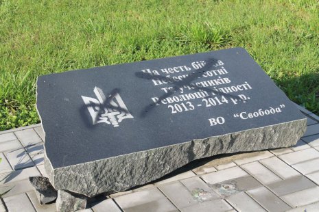 Неизвестные перечеркнули черной краской выгравированный на мемориальной табличке текст и герб Украины в ночь на 22 июля.