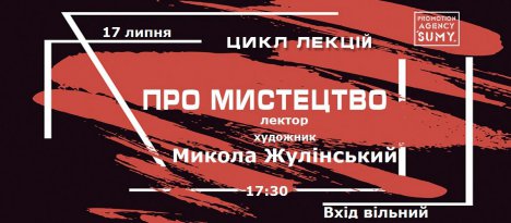 17 липня сумчан запрошують на чергову лекцію, яку читатиме сумський художник Микола Жулінський.