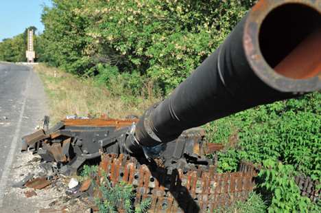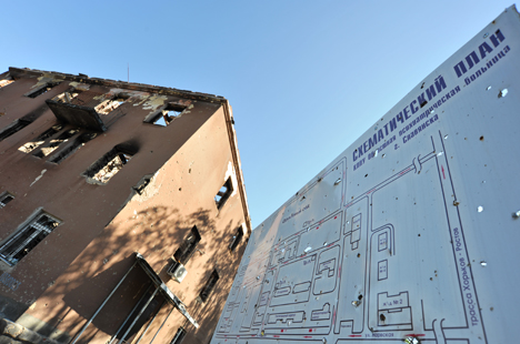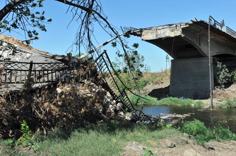 На второй день нашего пребывания на освобожденной территории мы отправились в поселок Семеновку, административно относящийся к Славянску. Как нам показалось, этот населенный пункт пострадал больше всего в окру-ге. Областная психиатрическая больница, расположенная здесь, восстановлению не подлежит. А вот местная школа, которую также нехило бомбили, была отремонтирована всего за три недели благодаря спонсорству Ощадбанка Украины. На открытие школы 1 сентября приезжал Святослав Вакарчук, подаривший учебному заведению электропианино. После реконструкции вход в школу украшает не только украинский, но и европейский флаг, а в коридорах среди портретов выдающихся людей появилось изображение Степана Бандеры.