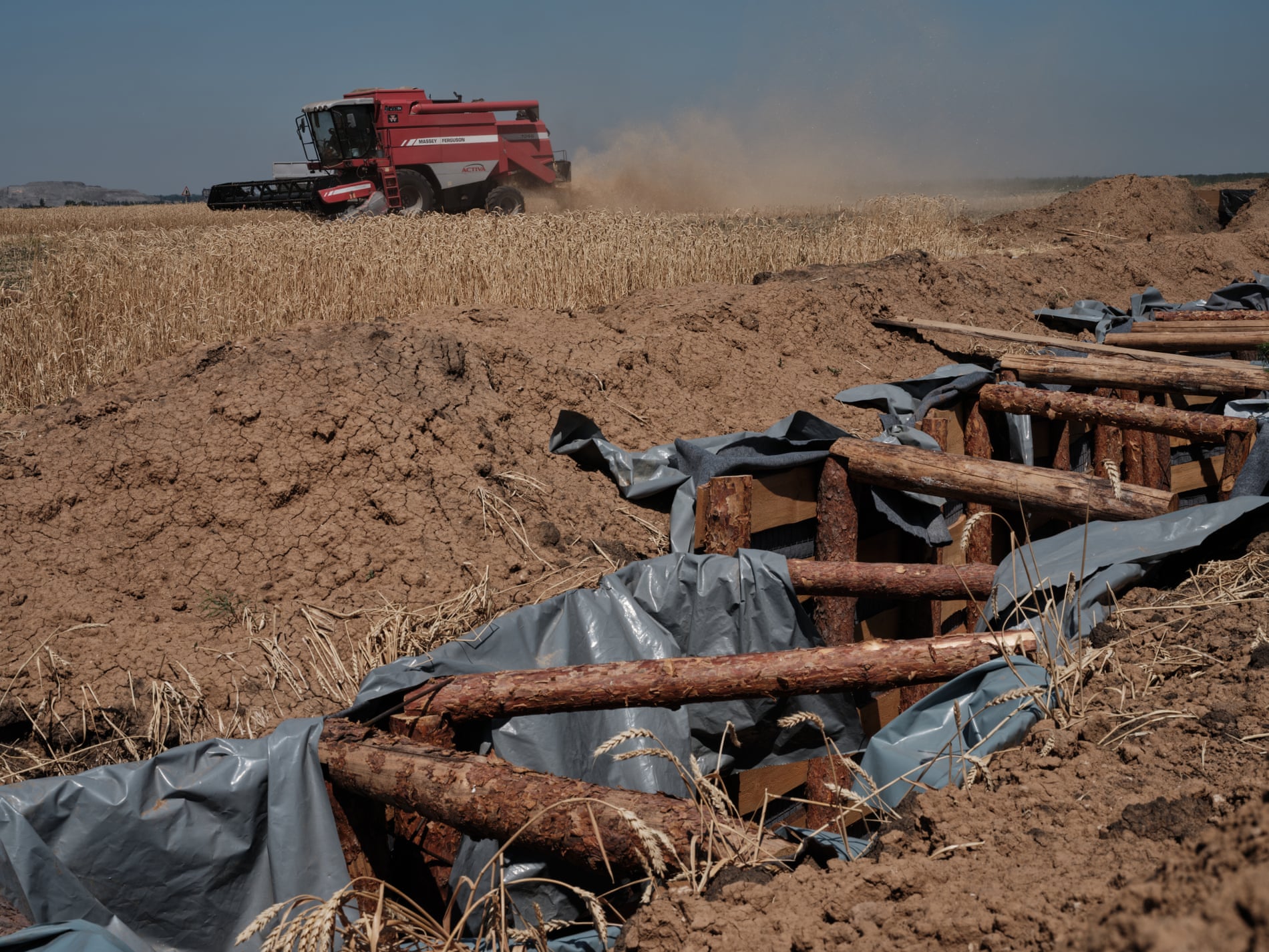 Як і багато інших ферм поблизу лінії зіткнення, земля Семи розрізана глибокими траншеями, що перетинаються з бліндажами, побудованими проти загрози нового російського наступу на Сумщину.