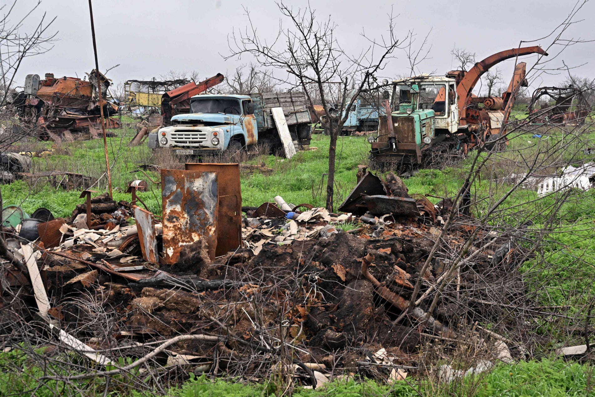 Сільськогосподарська техніка, знищена обстрілом у селі Новогригорівка. Фото: Сергій Супінський/AFP/Getty Images