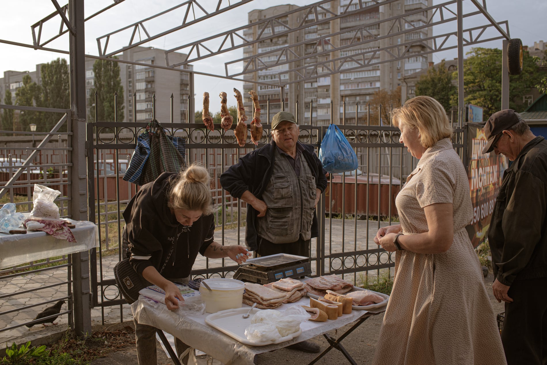 Продаж продуктів на фермерському ринку в Сумах у вересні. Фото: Андре Алвес/Anadolu/Getty Images