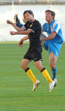 Самый выгодный момент для изменения счета на табло был упущен именно «горожанами»: Дмитрий Бермудес подключил к атаке левого крайнего, Виталия Сычева, а сам рванул в центр, где получил ответную передачу и, в падении дотянувшись до мяча, пробил левой ногой с десяти метров… Мяч, к сожалению двух тысяч зрителей, собравшихся на «Юбилейном», прошел в считанных сантиметрах от штанги.