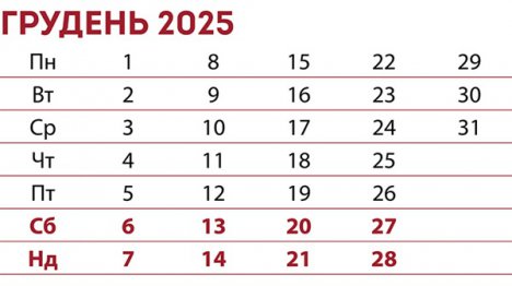 В календарі грудня традиційно 31 календарний день, з них - 22 робочі дні та 9 вихідних. Додаткових вихідних на час...