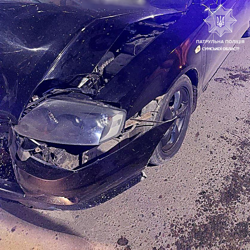 Патрульні склали на водія Hyundai Coupe адмінматеріали за ст. 124 (Порушення ПДР, що призвело до ДТП) та за ч. 2 ст. 126 (Керування транспортним засобом особою, яка не має права керування) КУпАП, повідомили в патрульній поліції Сумщини.