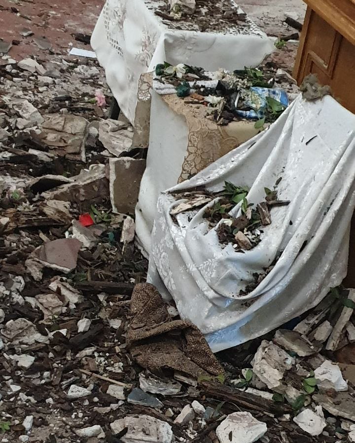 Унаслідок ворожого обстрілу будівля храму зазнала пошкоджень: вибито вікна, є руйнування стін, ікон.