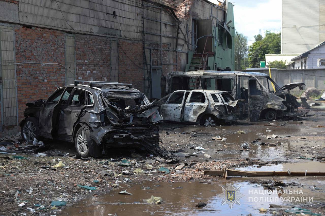Унаслідок атак пошкоджено щонайменше 4 автівки, складські приміщення, адміністративні та господарські будівлі, станції технічного обслуговування автомобілів, магазини та лінії електропередач. Поліція ретельно фіксує всі пошкодження та збирає речові докази.
