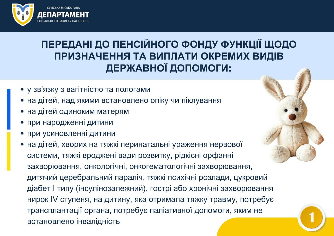 У департаменті Соцзахисту населення акцентують, документи, щодо яких станом на 30 червня 2025 року не ухвалені рішення, будуть передані до Головного управління Пенсійного фонду України в Сумській області до 15 липня – для розгляду, призначення або відмови в наданні допомоги.