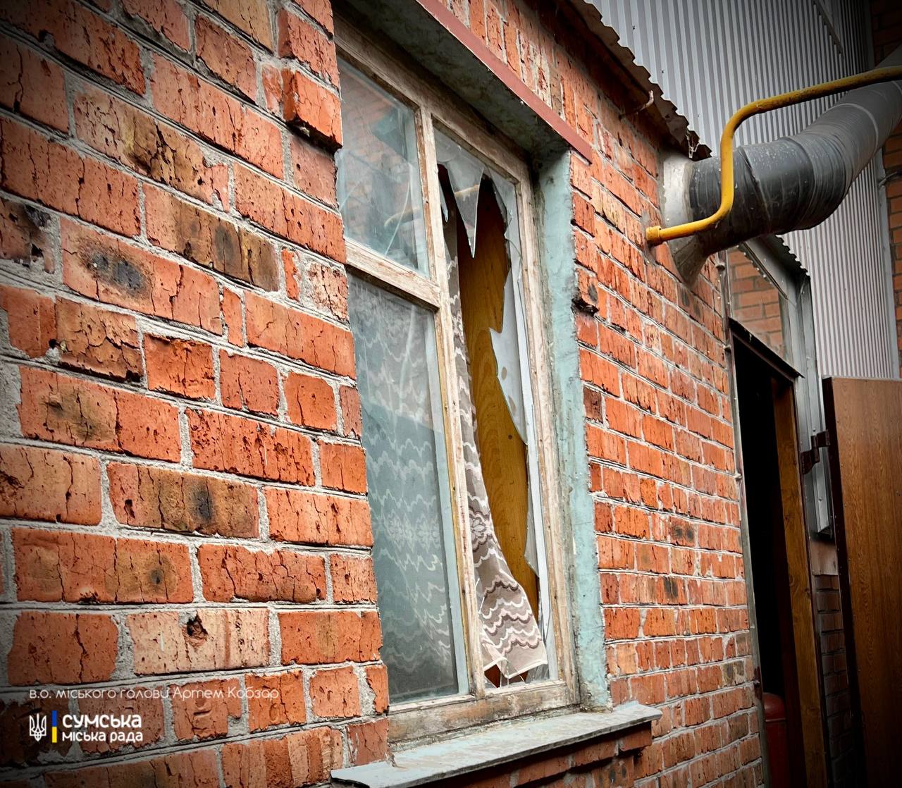 Внаслідок ворожого обстрілу в Ковпаківському районі Сум пошкоджено дерев’яну господарчу споруду, п’ять вікон та покрівлю житлового будинку.