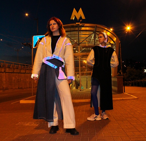 І я подумала провести такі дві паралелі – одяг і метро, і створила невеличку колекцію одягу. Створила ескізи костюмів, самі костюми, використала в них світловідбиваючу тканину. Тоді теж був такий тренд, який походив від потреби, бо був блекаут.