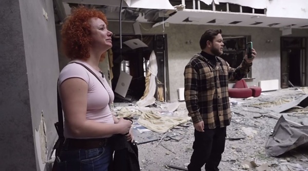 У Конгрес-центрі після російського удару. Скрін з відео Володимира Нянькіна