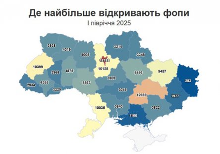 Попри загальну тенденцію до зниження, в окремих регіонах фіксується зростання: на Рівненщині (+291), Львівщині (+179), Київщині (+175), Івано-Франківщині (+101) і Волині (+69) відкрито більше ФОПів, ніж закрито.
