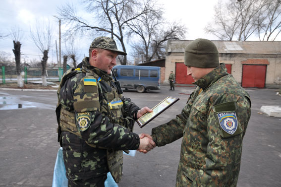 «В нынешних сложных условиях в государстве, вам, как и многим военным, придется встречать новогодние праздники не в кругу семьи, а в районе проведения антитеррористической операции. Дежурить на блокпостах и патрулировать населенные пункты, - обратился к бойцам сводного отряда полковник милиции Сергей Курочка. - Руководство УМВД благодарит вас за добросовестную службу. Кроме наград, мы привезли вам поздравления и подарки от родных и благодарных жителей нашего региона».