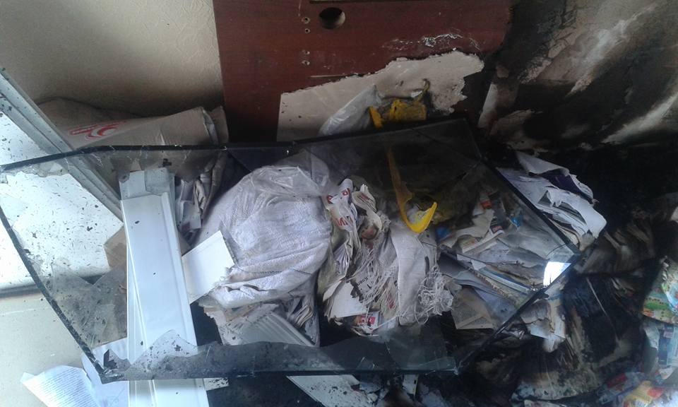 На вызов немедленно выехала следственно-оперативная группа полиции. Прибыв на место происшествия, правоохранители выяснили, что неизвестные злоумышленники, разбив окно балкона офисного помещения организации, находящегося на 1-м этаже жилого помещения девятиэтажного дома, бросили бутылку с веществом, имеющим специфический запах горюче-смазочных материалов. В результате возник пожар, сгорело имущество организации, а именно: флаеры, листовки и другие агитационные материалы.