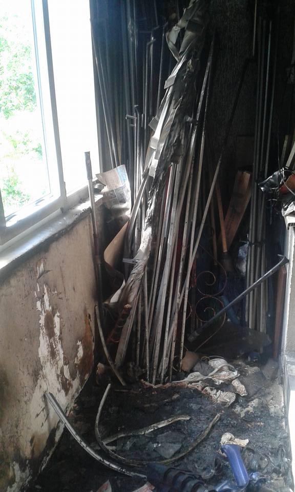 В результате пожара поврежден балкон, где находились агитматериалы. Люди не пострадали.