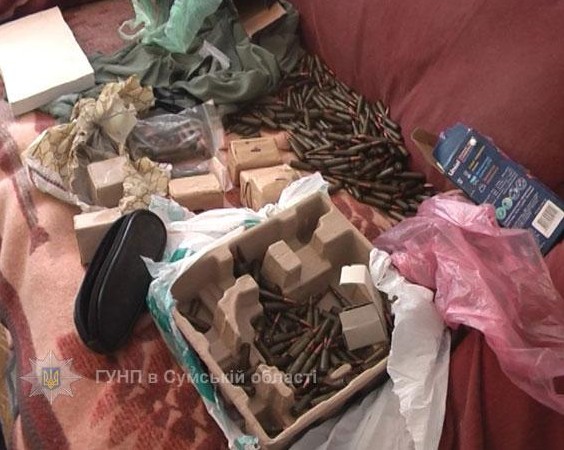 Проверить полученную информацию по месту вызова выехали работники Сумского отдела полиции, кинологической, взрывотехнической служб. Во время осмотра помещения за картиной в стене комнаты, они обнаружили настоящее хранилище: автомат Калашникова, гранату Ф-1, пять наполненных автоматных магазинов, подсумок для них и около полутора тысяч патронов различного калибра. В квартире также нашли несколько удостоверений на его же имя, которые указывали на принадлежность к общественным организациям и разного рода комиссий, пневматическую винтовку, карабин, два штык ножа, револьвер. К тому же выяснилось, что накануне мужчина избил жену. Врачи констатировали у нее компрессионный перелом позвонка грудного отдела.