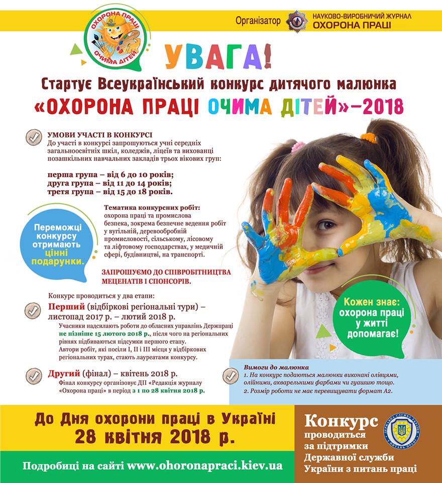 Финал VII Всеукраинской конкурса детского рисунка «Охрана труда глазами детей 2018» и награждение победителей состоится в марте-апреле 2018 года.
