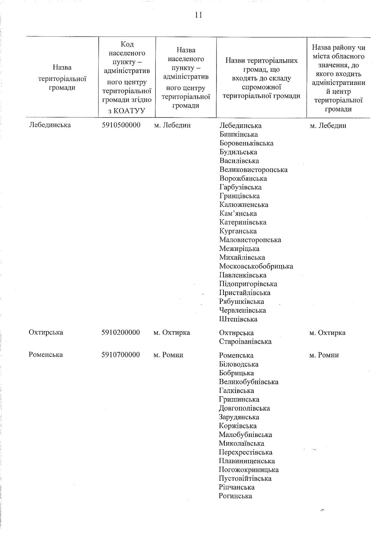 Будут большие Роменская городская, Тростянецкая городская, Шосткинская городская, Кролевецкая городская и Лебединская городская ОТГ.