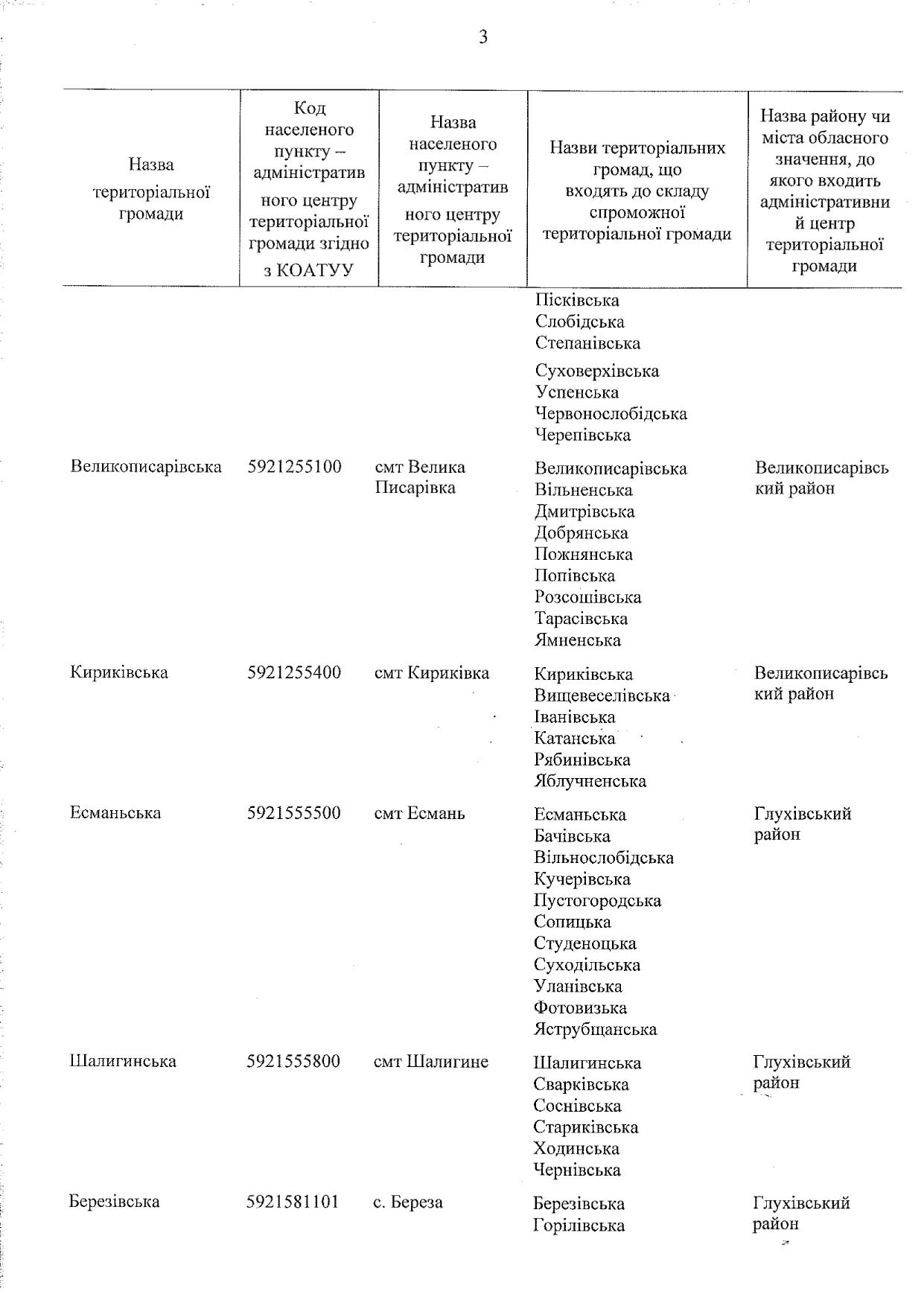Создается 51 громада базового уровня. «Больших Сум» не будет, к городу присоединится только Песчаное, Битица, Чернеччина и Стецьковка. Косовщина присоединена к Степановке. Создается Садовская громада, одна из самых абсурдных в области.