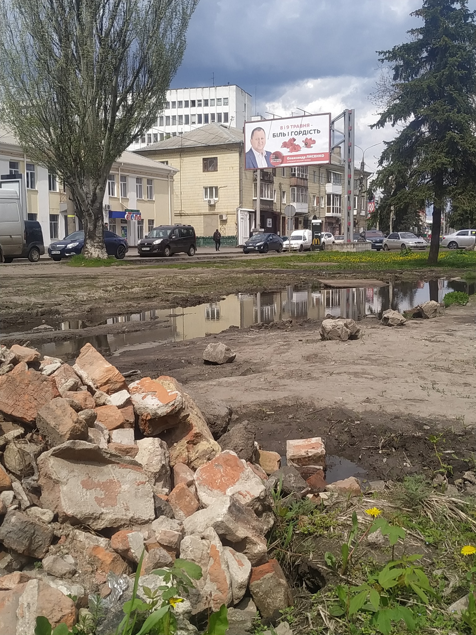 На них, кроме его собственной физиономии на треть плоскости красуется такой текст: «8 І 9 Травня – БІЛЬ І ГОРДІСТЬ».