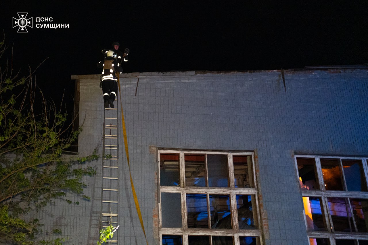 Близько 1:30 внаслідок влучання БпЛА загорілася будівля промислового підприємства, також там пошкоджений транспорт.