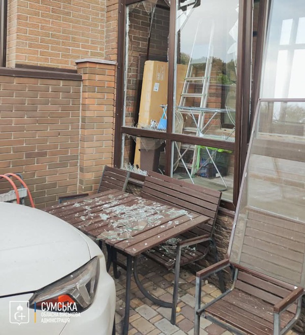 Орієнтовно о 4:30 внаслідок ворожого авіаудару в іншій частині Сум пошкоджені щонайменше 7 приватних та один двоповерховий будинки, а також автівки.