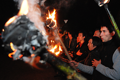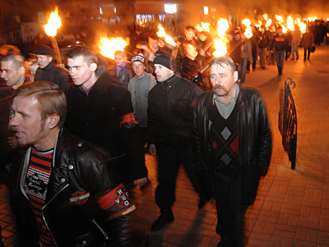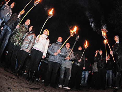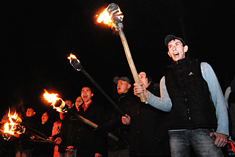 Около трехсот человек собрало факельное шествие по центру города, которое состоялось 14 октября