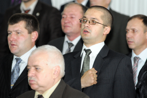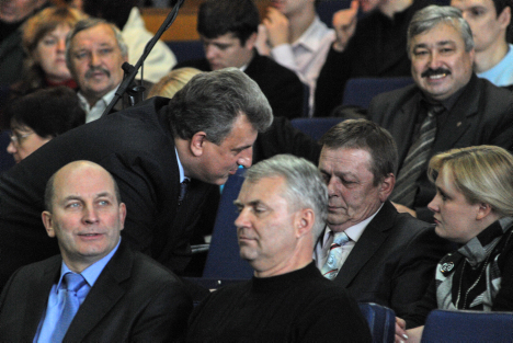 4/19 Не таясь Прямо на сессии мэр Геннадий Минаев о чем-то разговаривал с депутатами от Партии регионов. Олег Демьяненко